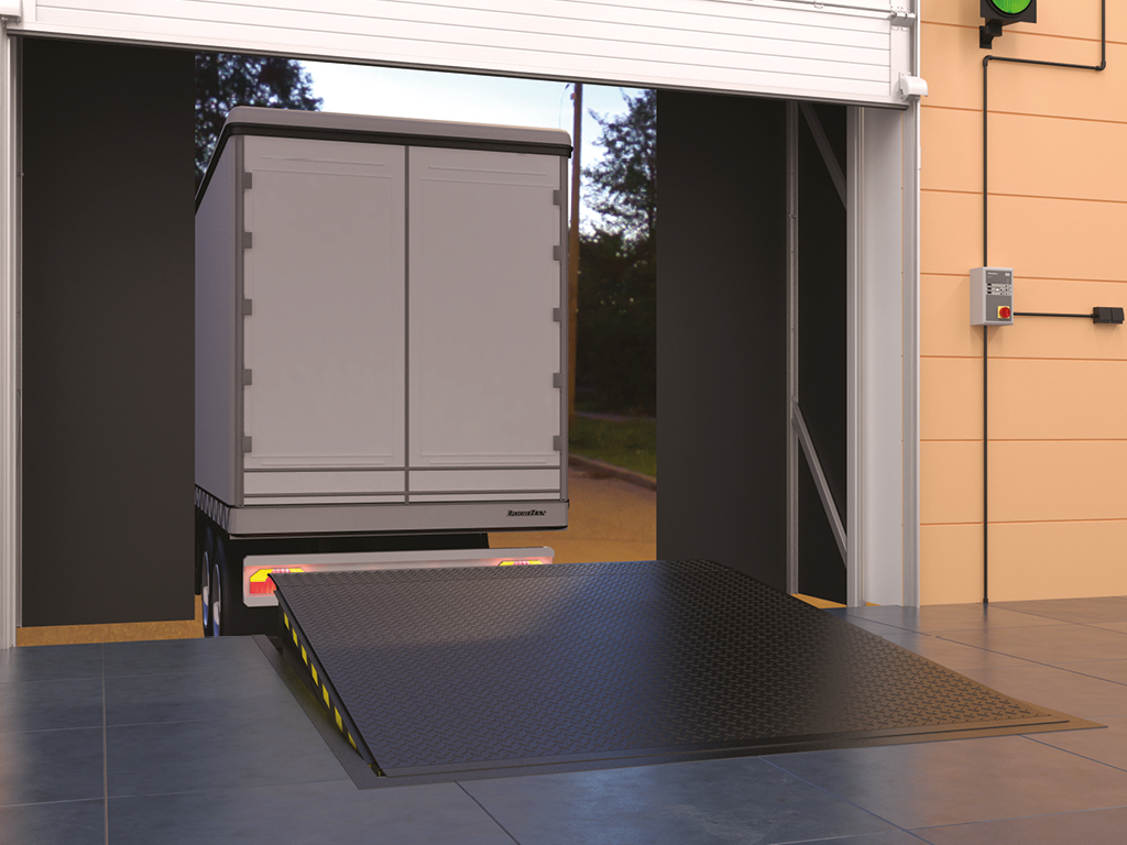 Электрогидравлическая платформа с поворотной аппарелью серии DLHH является стандартным устройством для оборудования перегрузочных доков. При активации платформа поднимается, и аппарель, поворачиваясь, открывается. Далее платформа опускается, пока не достигнет пола кузова автомобиля. По окончании работ платформа возвращается в исходное положение.